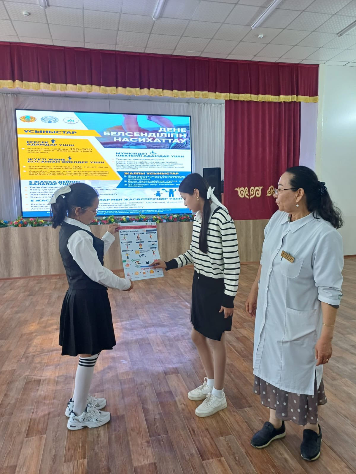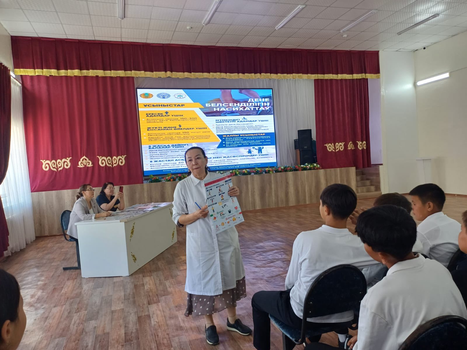 Оқушыларға жеке бас гигиенасы, өз денсаулығына жауапкершілікпен қарау, өзгеге құрметпен қарау, интернеттегі қауіпсіздік және кибербуллинг, зиянды әдеттердің алдын алу ( темекі, есірткі) жолдары жөнінде пайдалы ақпараттар берілді.