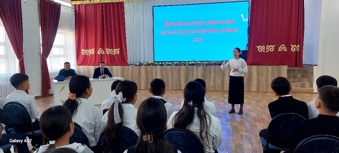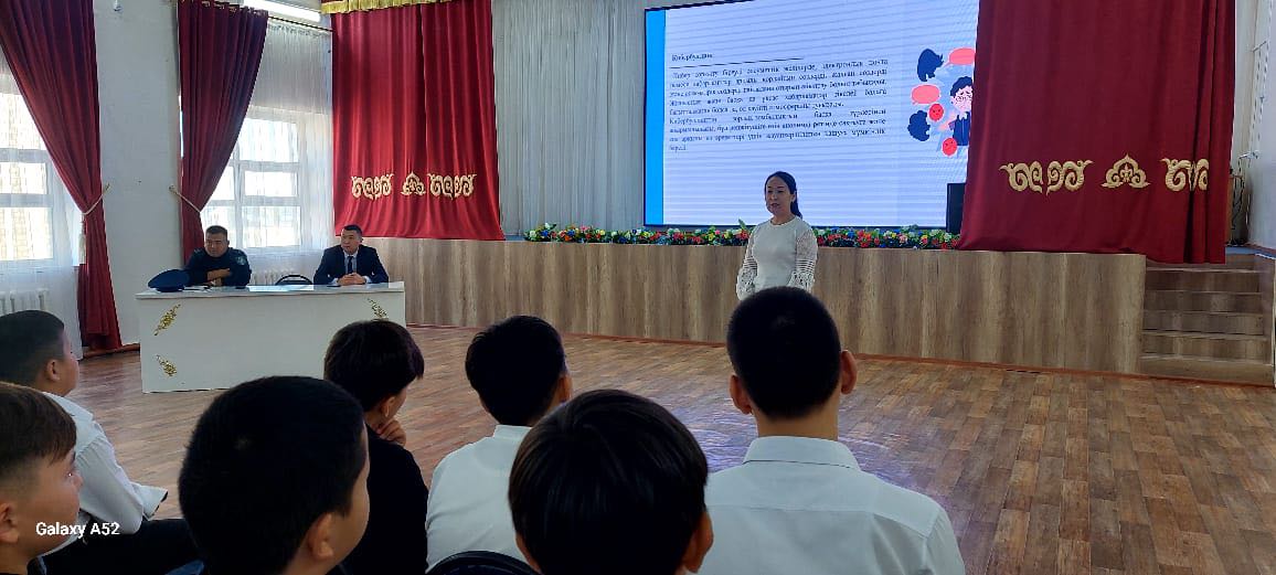 Acting Deputy Principal for Educational Affairs: N. Madalhanov, Senior Lieutenant of the Kyzylorda Police Department. — Choosing the Right Friend; Outreach sessions were held. Advice was given. Students were shown a video on the topic. Questions were asked, and their opinions were solicited. Adolescence is a period of development, full of significant personal and physiological changes, as students transition from childhood to adulthood. Therefore, conducting comprehensive outreach sessions is clearly effective.