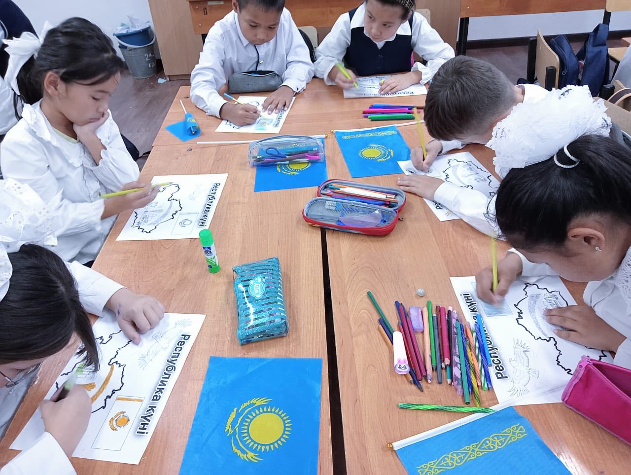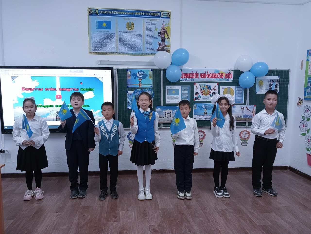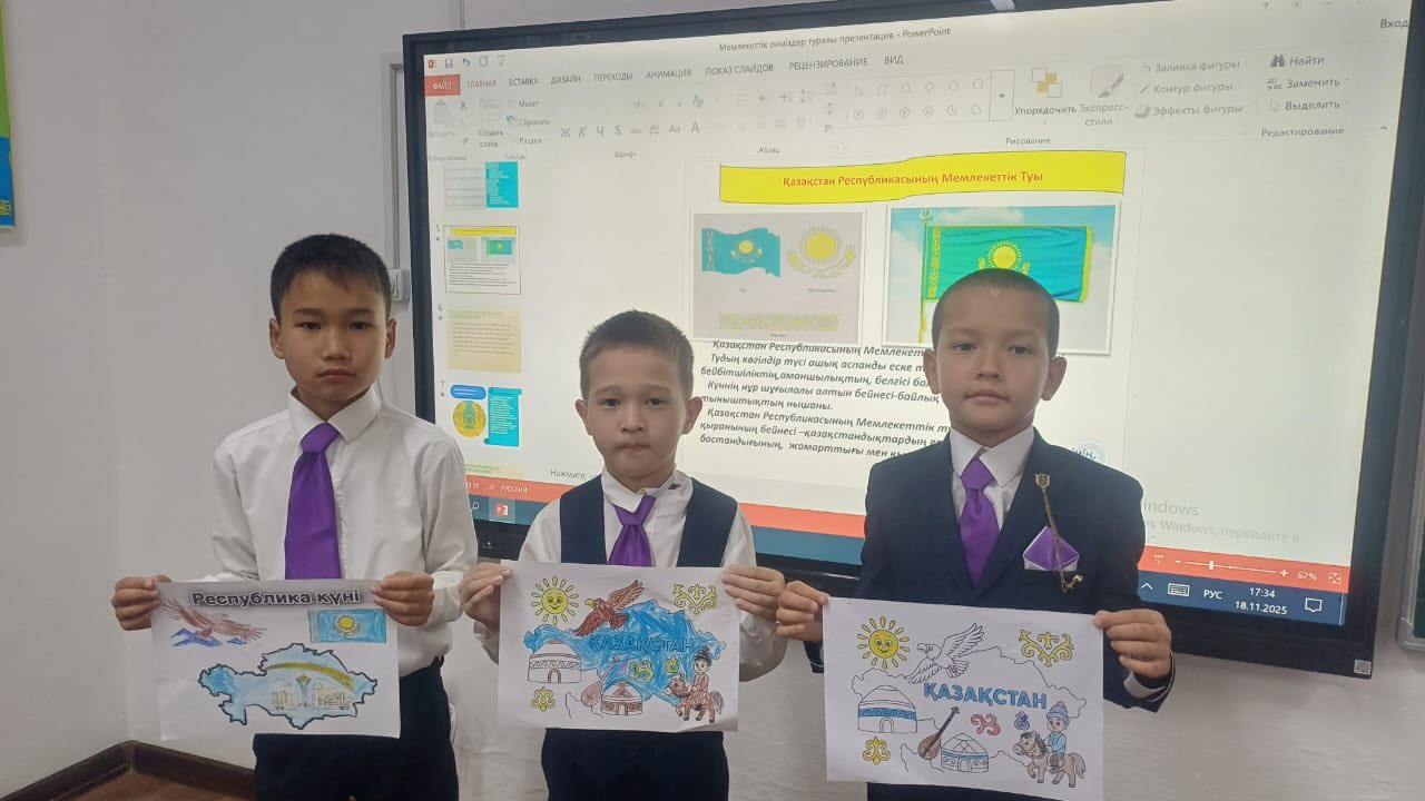 Taking pride in their symbols, the students began the educational session by performing the National Anthem of the Republic of Kazakhstan. Videos were screened, and an overview of the history and significance of the symbols was presented. Students were asked questions regarding the symbols, bringing the lesson to a close.
